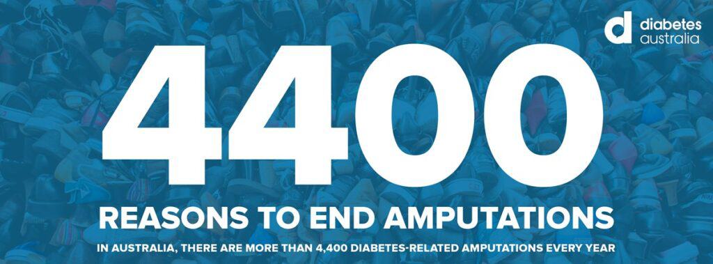 4400 Reasons to End Amputations The 4400 Reasons to End Amputations Campaign aims to raise awareness of the need for urgent action to address diabetes-related amputations in Australia. Currently there are 4,400 amputations performed in Australian hospitals every year – and up to 85 per cent of these could be prevented. See information about the campaign here: About the campaign Media and digital materials Facts and figures Personal stories Medical experts Our supporters