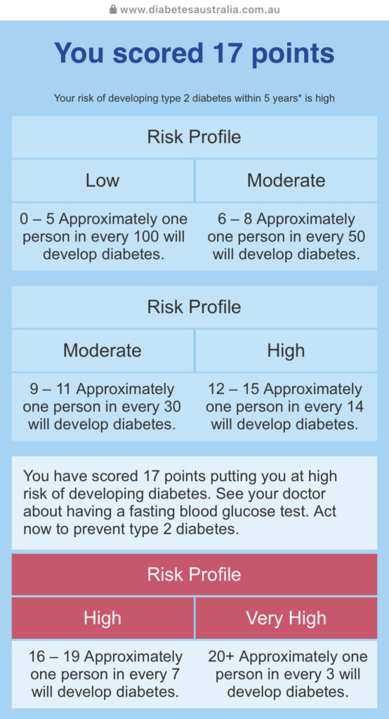 I was living with type 2 diabetes and didn’t know it, could you be too? 23 September 2021 Earlier this year I was diagnosed with type 2 diabetes; it was a shock to me, and it shouldn’t have been because the risk was always there, I just didn’t know it. Over the past 12-months I started experiencing high-blood-pressure and my GP at the time said it was in relation to being on the contraceptive pill, I was then put on medication to manage the high blood pressure which worked. To rule out any other underlying conditions though, the GP ran a heap of different tests, including two that should have picked up my diabetes, but they didn’t. I moved to the Gold Coast in February this year and I started to experience small bouts of dizziness and feeling nauseous, I decided to go to my local GP for another round of tests. This time my blood tests came back with high readings on a few different things including blood glucose, my GP organised new tests one of which was the ‘Glucose Tolerance Test’ I hadn’t had this test before; it involved fasting and taking 3 blood tests within 2.5hrs including drinking a high dose of glucose and seeing if my sugar levels continued to rise an hour after drinking the glucose. The test came back positive for type 2 diabetes. At 39 I’m ashamed to say I didn’t know enough about type 2 diabetes when I was diagnosed, it had never really been an illness I put much thought into and that was my biggest mistake as I became high risk the moment my mum was diagnosed with it. There are two ways to get type 2 diabetes and that’s through genetics and or lifestyle factors, for me it’s both. When you’re diagnosed with type 2 diabetes you are given a ‘Diabetes Care Plan’ and appointments are made to see a dietitian, a diabetes educator, and other appointments such as a podiatrist and physiotherapist if needed. Already in the first week of being diagnosed I’ve learnt that type 2 diabetes is a progressive diabetes, although it’s for life it’s also reversible and if I lose the weight and focus on a clean and healthy lifestyle, I have the opportunity to put my diagnosis into remission . . . In the same breath I was warned if it’s purely genetics my blood levels might still be high and my diagnosis remains the same, but I’ll only know in 3-months once I’ve fought like hell to do everything I can to change my diagnosis. I am now on oral medication (I don’t need insulin) which I take once a day, I no longer have any symptoms and feel remarkably healthy. Over the next 3-months I’m committed to a clean diet with no sugars, no carbs, no bad fats, no fried foods, no processed food and most importantly no alcohol. That’s all it takes to re-test for diabetes and that combined with daily exercise should hopefully see better results. I, like so many other Australians, had type 2 diabetes and didn’t know it, you might not even have any symptoms. So, what do you do? I’ve since gone onto the Diabetes Australia website and taken the quick test to see what my risk level is of getting diabetes and . . . . it came back high risk. Please see your GP and get tested if your risk level is above normal. My only regret is that I didn’t know enough about type 2 diabetes, based on my mum’s diagnosis alone I should have been getting screened every year and adapting to more moderation in my lifestyle. My mum’s diabetes resulted in pancreatic cancer, and she lost her battle to cancer 6-years ago, I’ll be forever grateful for being diagnosed with type 2 diabetes because it may have just saved my life. To anyone who shames someone with diabetes and refers to it as ‘The fat disease’ or ‘It only happens to old people’, you are wrong. Nobody wants diabetes no matter what their size or health, it is a misunderstood and underdiagnosed condition that is the fastest growing chronic condition in Australia. It affects younger people too and those that aren’t morbidly obese. No one should feel awkward or ashamed about diabetes, especially people who it doesn’t even affect. Instead of putting your head in the sand when confronted with a diabetes conversation, how about you ask questions to better educate yourself and just be supportive? Risk assessment result You can take the quiz here: Risk Calculator – Diabetes Australia